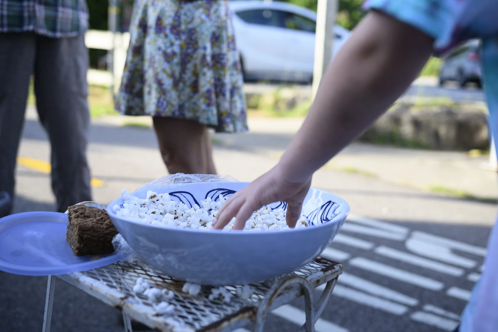 We had one of my favorite openings on a lovely evening right on the bike path, keeping and eye on the bikes that occasionally whizzed by.